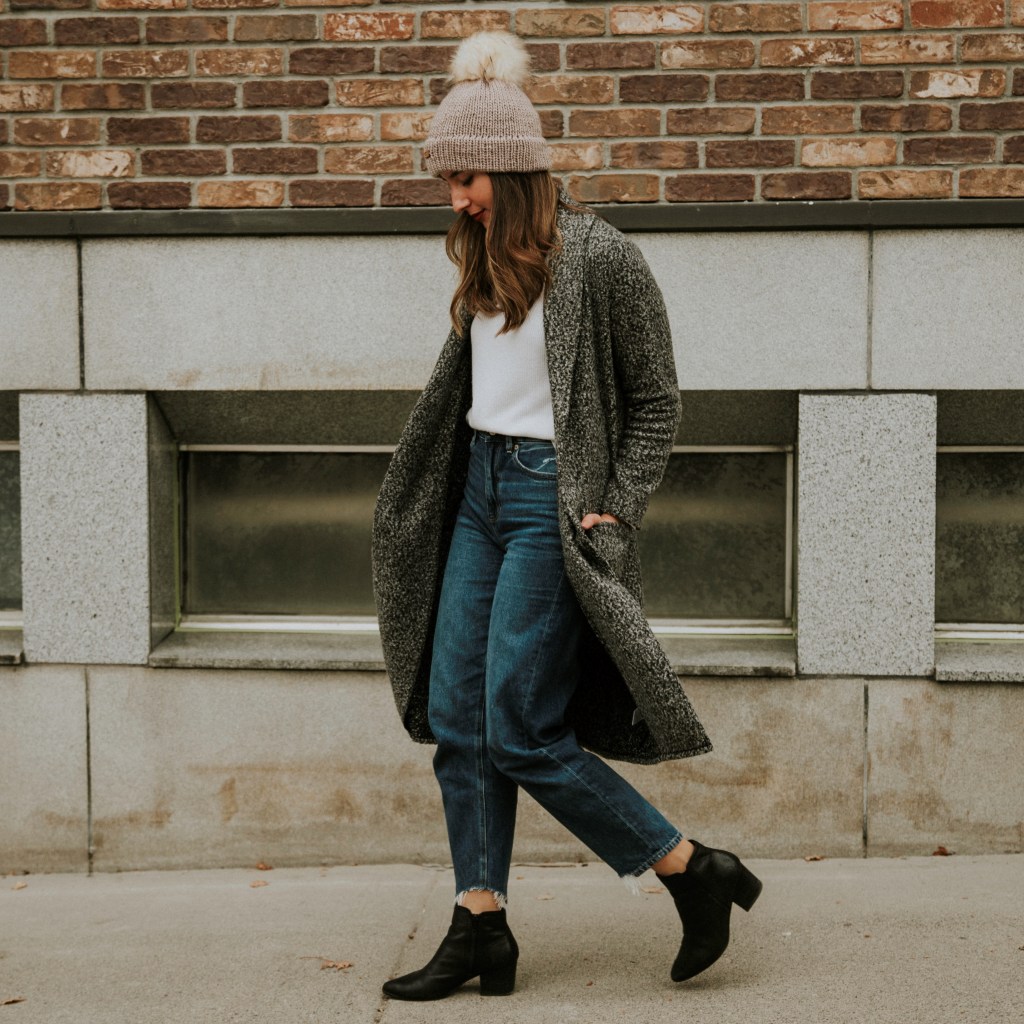 This hat is knit from the brim up. Essentially what you are going to do is cast on the required number of stitches so it will fit comfortably on your head, knit continuously until your work is TWICE as long as you want your brim to be, fold your work in on itself and attach your cast on edge to your working stitches by knitting them together as you go around, knit a bit more until your hat is just about as long as you want it to be, decrease, and finish off your beanie. It sounds simple, and I promise it is. This is my go-to pattern when I want to just watch a movie and not really pay attention to what I’m knitting.